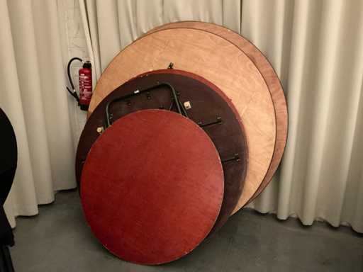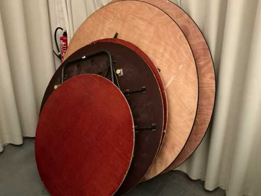Lot of 7 bar tables with cover and 6 round restaurant tables of different diameters