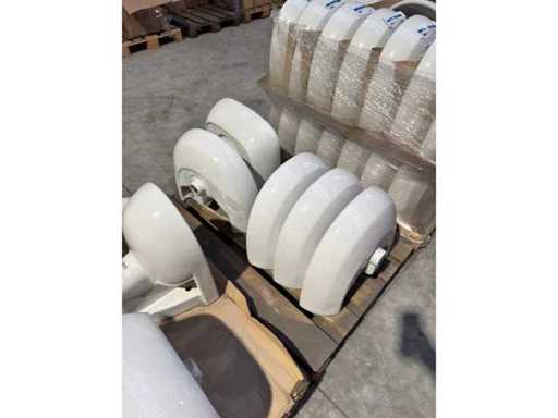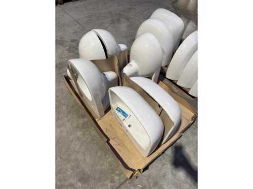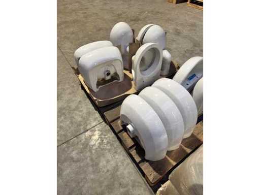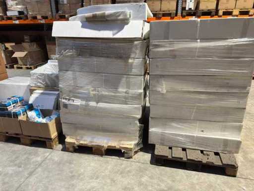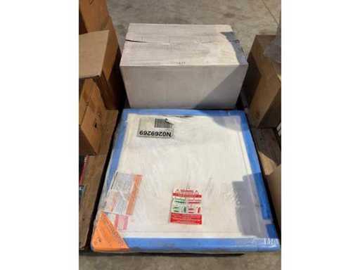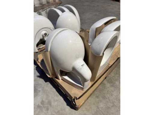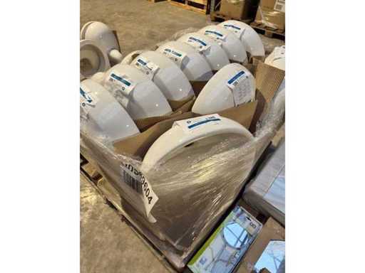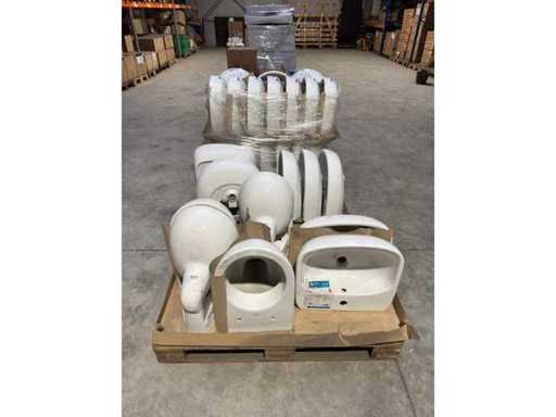 Party sanitary ware. 9 pieces. See photos and description. Pallet 1: 4 pieces of ceramic toilets (Swiss) + 2 pieces of ceramic sink (Swiss) Pallet 2: 5 pieces ceramic sink (Swiss) Pallet 3: 20 pieces ceramic sink (Swiss) Pallet 4: bathroom mirrors Pallet 5: toilet & bathroom accessories Pallet 6: shower tray + sink (Germany) Pallet 7: 2 pieces sink + shower light + sink drain + tools Pallet 8: 8 pieces shower tray incl. Chair legs, shower head, shower rod, etc Pallet 9: 8 pieces shower tray incl. Chair legs, shower head, shower rod, etc