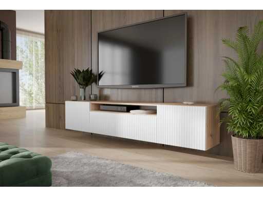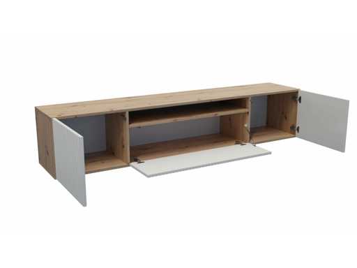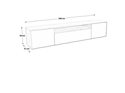Material Wood-based material Back panel material MDF execution Suspended Artisan Color & White Living Room Number of doors 3 Front Type Ground Type of handles Handle strip Door Type Folding Door Width 200 cm depth 41 cm Height 40 cm Open compartments 1 Closed compartments 3 Height 200 cm