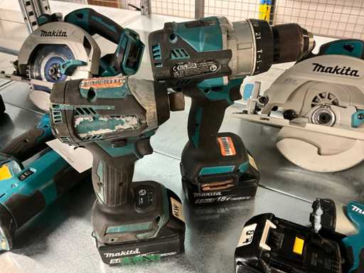 Consisting of: impact screwdriver, drill driver, multi-tool, circular saw and walking lamp