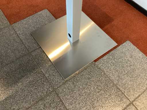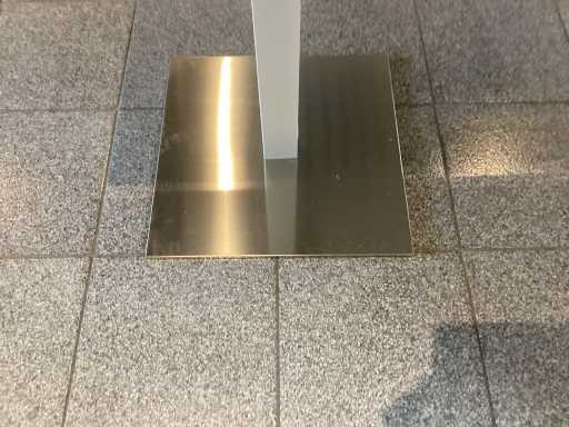 Gray leaves; white legs; stainless steel base; heavy table; hole in the middle; without a suitable lid;