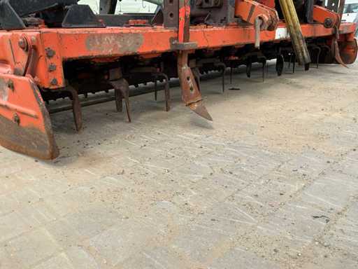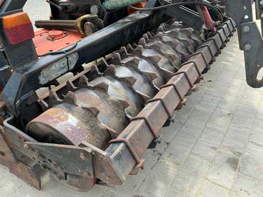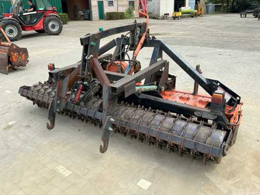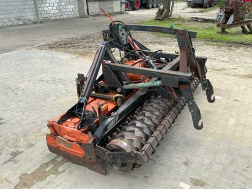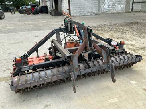 Maschio 3 m power harrow / power harrow with hydraulically adjustable packer roller and heavy lift construction. Machine complete but with clear signs of use. ROTOR DEFECTIVE – overhaul necessary. Ideal as a parts machine or for repair project. PTO and hydraulics available. LOADING ASSISTANCE is provided - Drive: