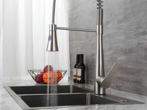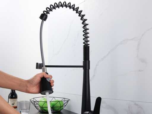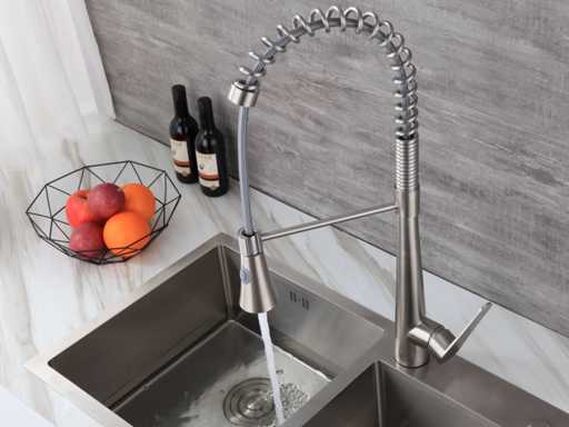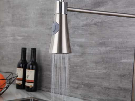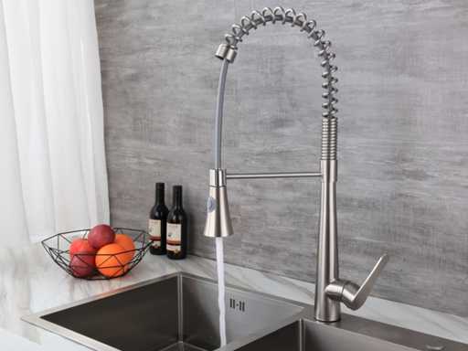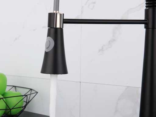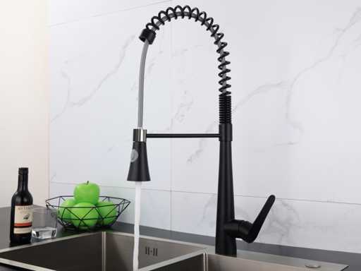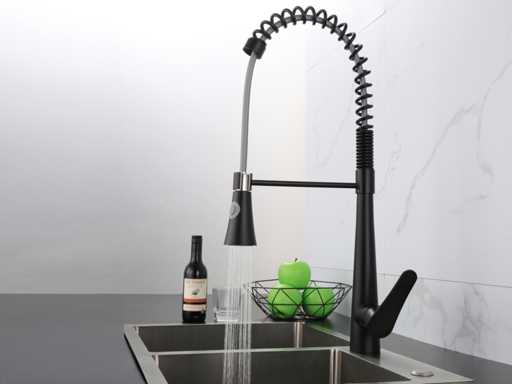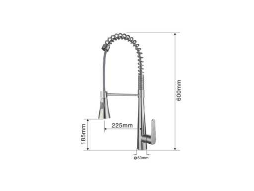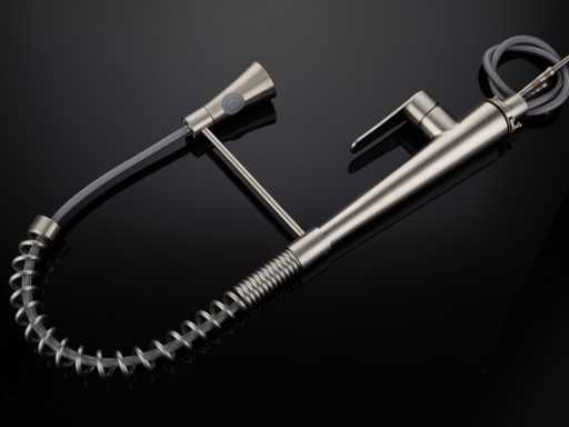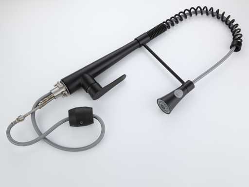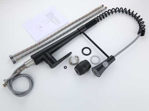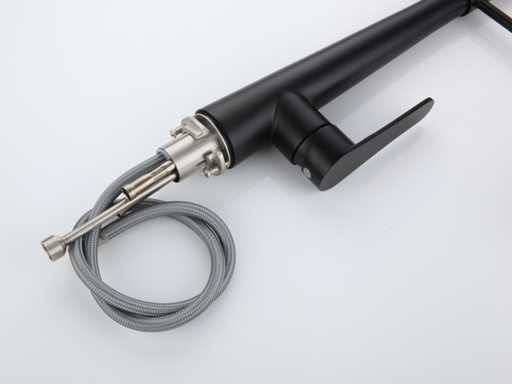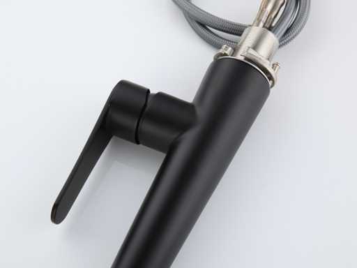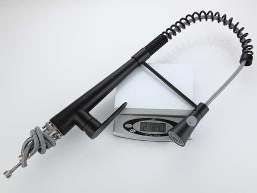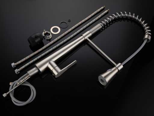 Color choice brushed stainless steel or Matte black (please indicate choice by email on info@mawialux.nl), material 304stainless steel, height 60 cm, weight 2.5 kg, equipped with extendable hose, spray head with 2 functions, spout 360 degrees rotatable, water hoses with connection material