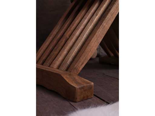Medieval scissor chair Reproduction of a medieval wooden scissor chair. Very comfortable and extremely practical also for markets and camps, as it is foldable. Details: - Total height to the backrest: approx. 70cm - Seat height: approx. 51cm - depth: approx. 40cm - Seat surface: approx. 31cm x 27.5cm - Weight: approx. 9.7 kg