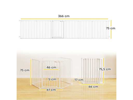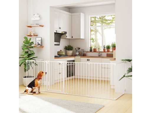 Metal safety gate foldable and modular enclosure for dog and child 6 panels 61 x 75 cm white