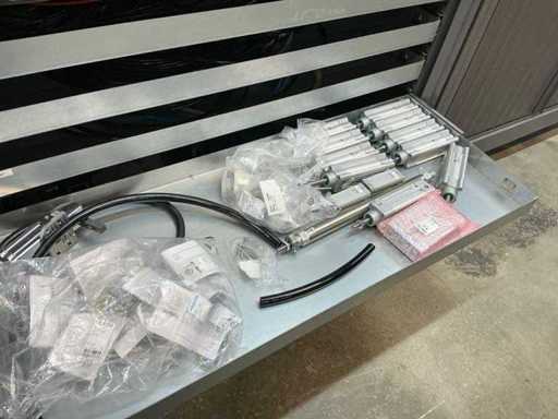 Including 2x Festo standard cylinder dsbc-50–25 PPVA-N3, 10x Festo standard cylinder DSBC-32-60-PPVA-N3 and Festo guide cylinder DFM-20-80-P-A-GF