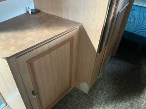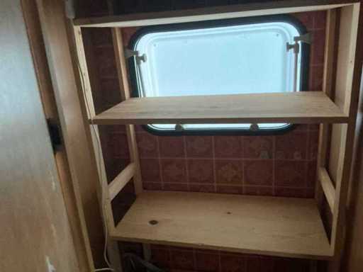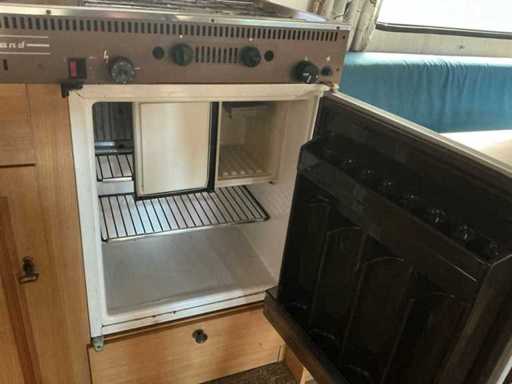 Equipped with: round seat with table front, kitchen unit with gas stove and refrigerator, double bed at the back, cupboard space, stove, extra walk-in closet (formerly sanitary room), support legs, spare wheel.