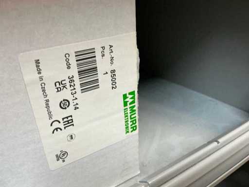 Case size: 100x30x199 cm. Contents include: 1x Murr 85016 power supply, 2x Murr 85002 power supply, 3x Murr 58812 switch, 1x Murr MCS-B 85371 power supply, 2x Murr 85162 power supply