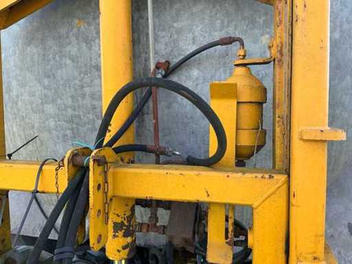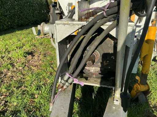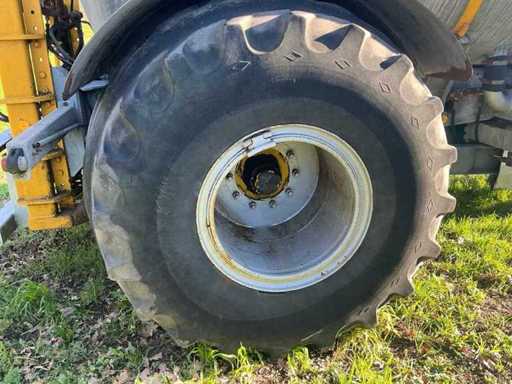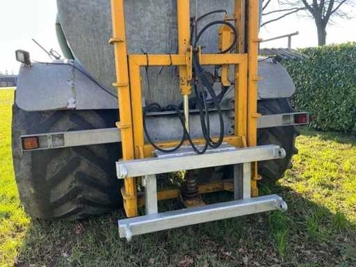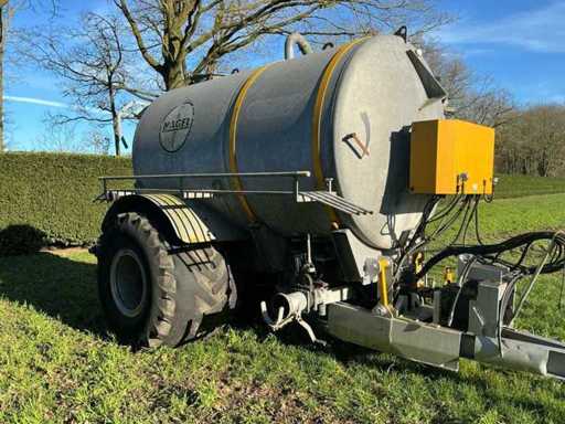 Equipped with: Nagel single-axle slurry tank with vacuum pump (PTO driven), tank capacity 8,500 litres, working width injector approx. 2.5–3.0 m, own weight approx. 3,000–4,500 kg, total weight filled approx. 12–13 tonnes, fitted with agricultural tyres, serial number 6237390. rear linkage with cylinder.