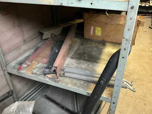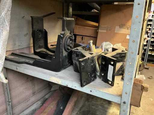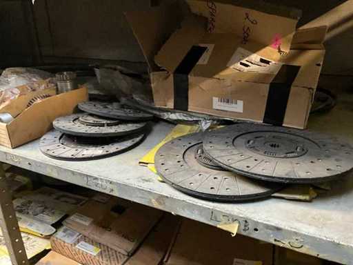 Consisting of rack contents with 11 sections including pressure plates, clutch plates, gears and rollators, hydraulic hoses, supports, hydraulic cylinders