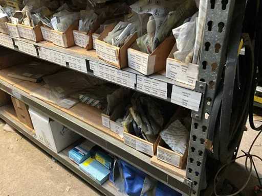 Contents of the first part rack with 5 sections consisting of brake discs, seals, flanges, accumulators, etc.