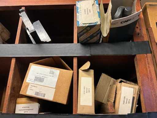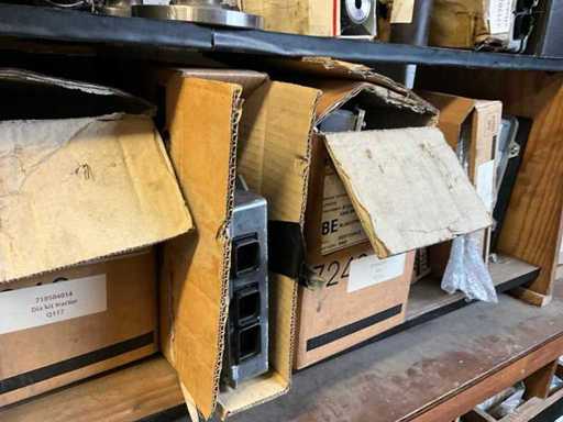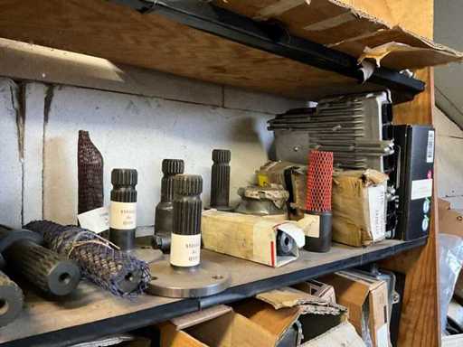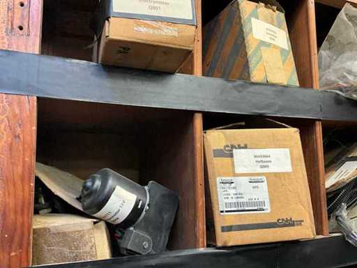 Consisting of contents 2x wooden rack including windshield wiper motors, steering column levers with cabling, steering boxes, flanges, sensors etc..