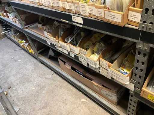 Consisting of content part 2+3 of rack with 8 sections consisting of wheel hubs, gps screens, flanges, bushings and axles, ball couplings, seal kits etc..