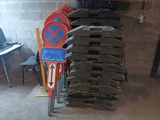 37 "no parking" signs with their bases