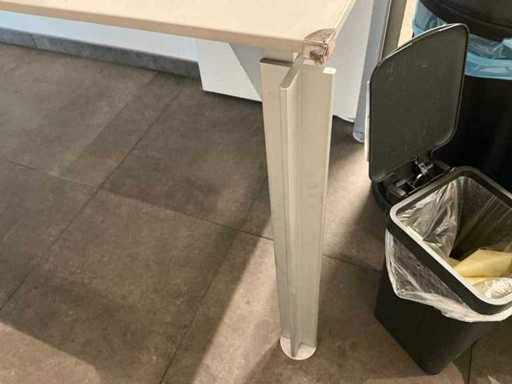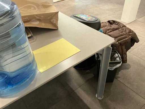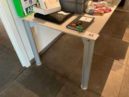 Equipped with formica wooden top and metal legs. Without raised contents and numbered lots.