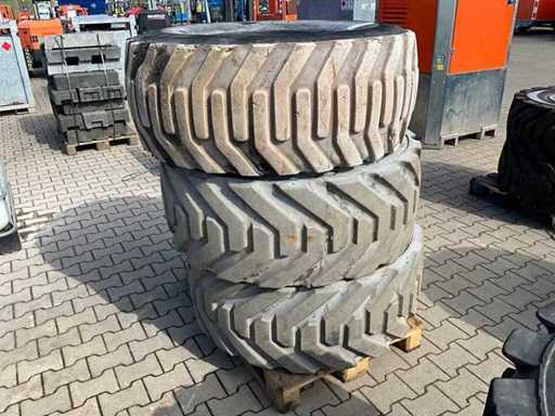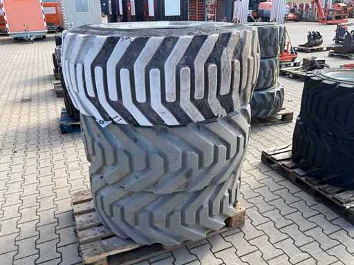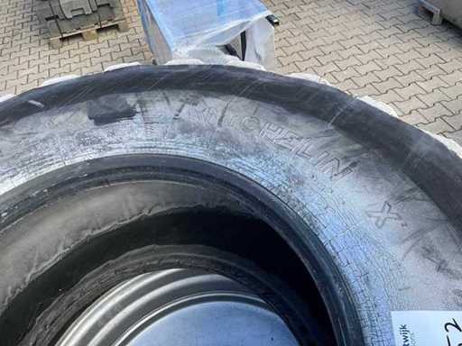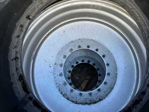 2x steel rim; pitch 16x305 mm; hub diameter 270 mm; 1x michelin 18R22.5 double X radial tire; of which 2 with rim; JLG M600; non marking;