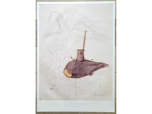 offset print of a (smaller) work from 1996, based on Panamarenko's monumental creation "Panama" (steel submarine), signed and numbered in the plate, unframed