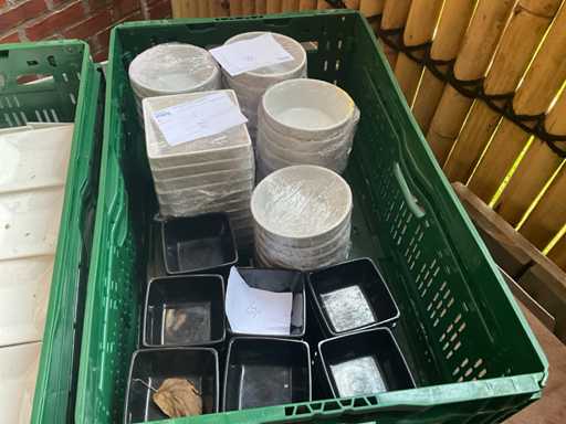 Consisting of approximately 134 square ones with dimensions 11x11 cm, + approximately 80 pieces including square 9x9 cm + 12x12 cm + round dimensions 12 cm, in 2x stackable crate