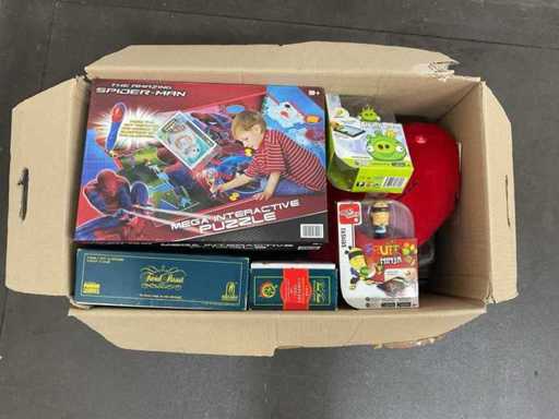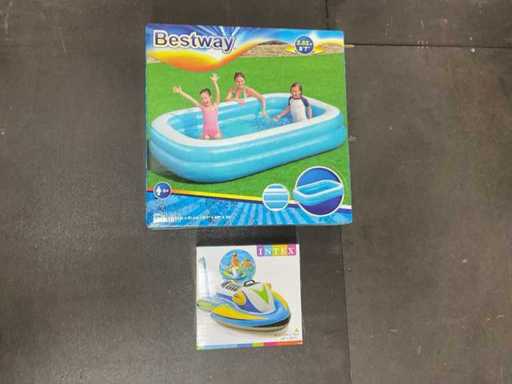Board games, cars, balloons, stickers, star-wars cards, games, swimming pool, wave rider