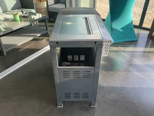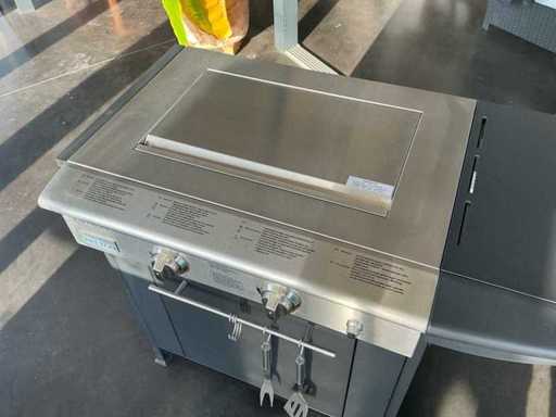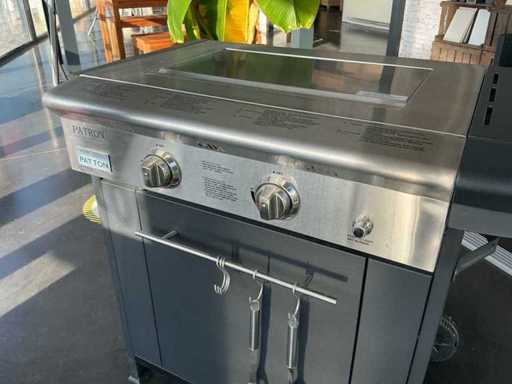 Equipped with: 2 stainless steel gas burners, Patron series, agent model with side table, stainless steel housing, suitable for propane/butane, Width: ~ 112 cm, depth: ~ 50–55 cm, height (with lid closed): ~ 115–120 cm, this is a new product.
