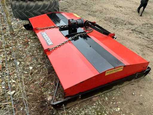 Robust PEECON pasture topper for grass, rough and stubble residues. Driven via PTO (PTO) with central gearbox. Equipped with 3-point suspension (cat. II, presumably). Equipped with 3 large blades and wear-resistant skid slippers for an even cutting pattern. Solid, heavy-duty construction – suitable for intensive and professional use.