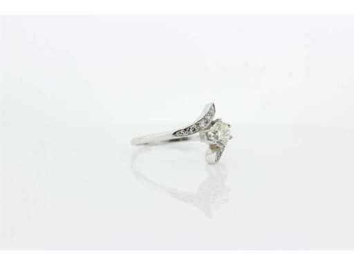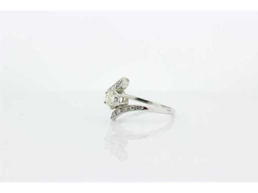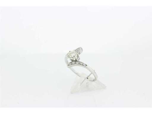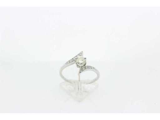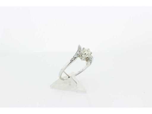 Impact ring with 1 brilliant cut diamond weighing 0.50 crt as the main stone. Colour K and quality VS. On the shank are 10 diamonds cut as 8/8 with a total weight of 0.10 crt. Colour G and quality VS. Includes a ring box and a valuation report with an insurance value of € 2395,-- issued by a qualified appraiser. Gemstone: Natural diamond