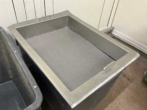 Equipped with 2 fixed wheels and 2 swivel wheels and 3 copies with drain tap at the bottom. Of which 1 with colander.