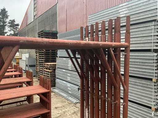 Uprights with dimensions: 130x216cm, on metal stacking stand and approximately 30 diagonals with length 260cm