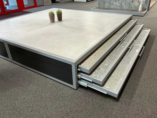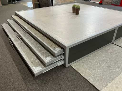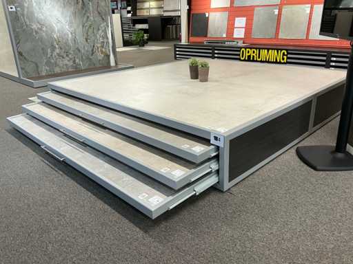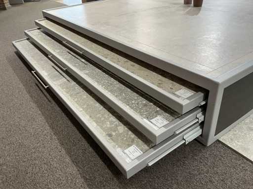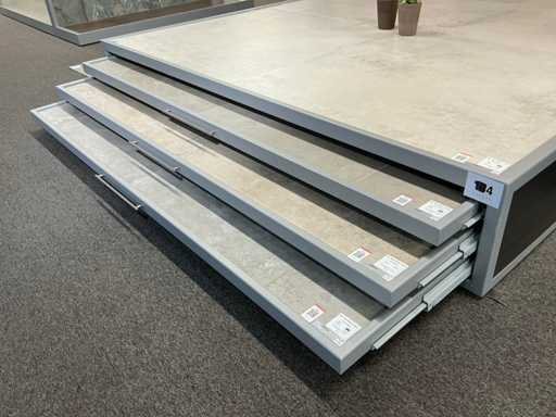 Each equipped with 3x sliding shelf. By disassembling or moving the surrounding area by copper. All adhered tiles MUST be taken by buyer.