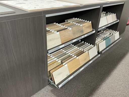 Consisting of 4x REDEC BU block with 2x sliding drawers, each with dimensions approx. 133 x 66 x 110cm, 1x REDEC RDC3A with 2x storage compartment, with dimensions approx. 133 x 90 x 110cm and 1x REDEC RDC3B with 1x storage compartment, with dimensions approx. 133 x 90 x 110cm.