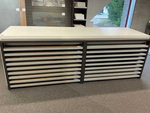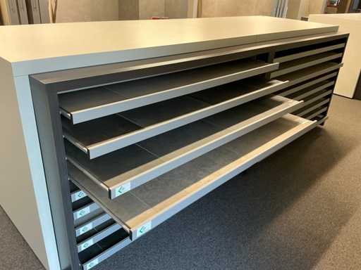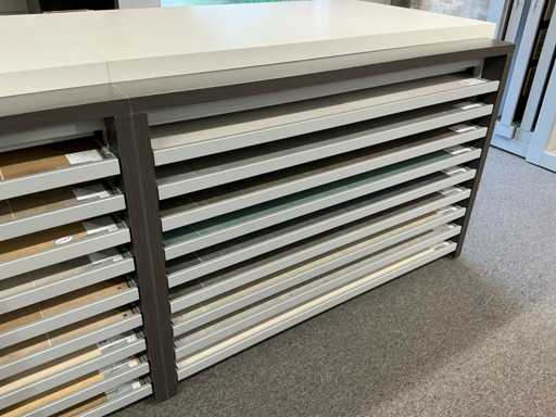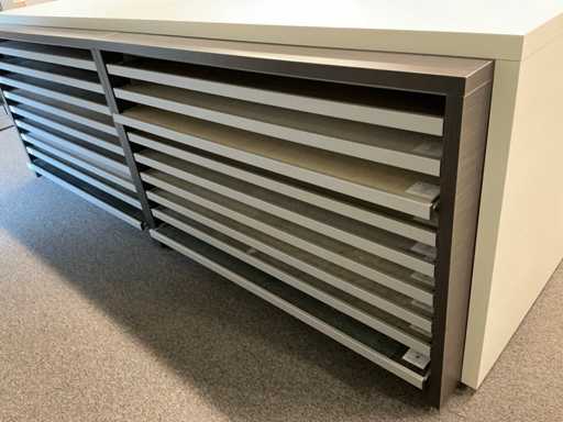 Consisting of 1x décor block (320 MEL) and 2x REDEC Delta 18-142 R, each equipped with 18x sliding shelf.