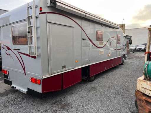 Vehicle is sold as seen without warranty of any kind Only limited testing on private land at low speed This camper starts and runs well and is movable. Please note: the vehicle is currently not building up sufficient air pressure. The camper has been standing still for a while. There has been water in the living area because the roof window has remained open. See photos for the condition and visible traces. The camper also comes with a large awning (not visible in the photos). The entry ladder is present, but needs to be reassembled. Mileage 59,000 km (low mileage). Equipment LPG tank Power group (generator) Solar panels Large waste water tank and clean water tank Air conditioning in the cabin and air conditioning in the camper area............................... 2 new starter batteries installed Thanks to the low mileage and the available equipment, this is an ideal basis for the handy handyman: perfect project to turn into a top motorhome again with the right approach.