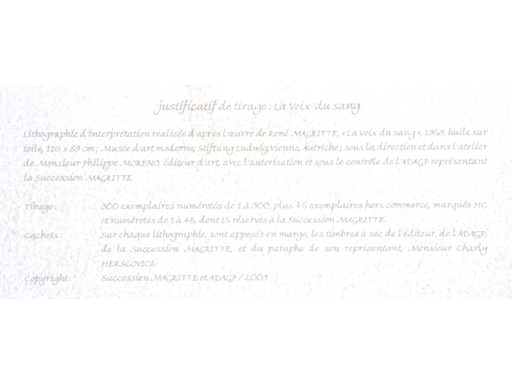 lithograph after the work of René Magritte 'La voix du sang' from 1959 - Provided with the ADAGP and Magritte Succession as well as the initials of Charly Herscovice - This is the largest published format of the series after Magritte