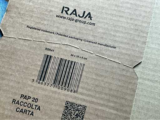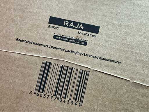 Complete with 1 manual paper cutter, 4 aluminum roll displays in fabric storage bag and about 100 various cardboard boxes RajaPack,