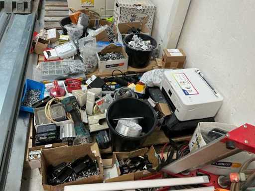 Equipped with: collection of various installation materials including screws, bolts, grinder, gas bottle, garden hose, installation cable, pallets, storage boxes without contents, full boxes of screws