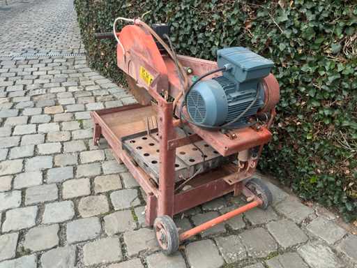 Due to cessation of activities, lot consisting of a robust Saint-Gobain Abrasives JCW600 Masonry Saw of Year of Construction 2017, Ideal for cutting concrete, brick and clinker. Equipped with a powerful 2 kW motor and suitable for a saw blade of approx. 600 mm. Solid construction, designed for intensive use on the construction site. The type plate is partially legible (model JCW600). Machine has been used, with visible traces and already renewed engine.