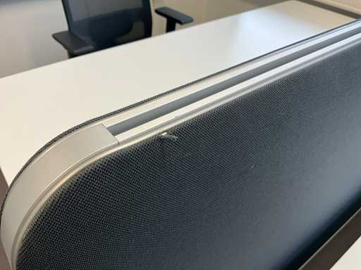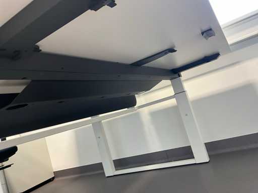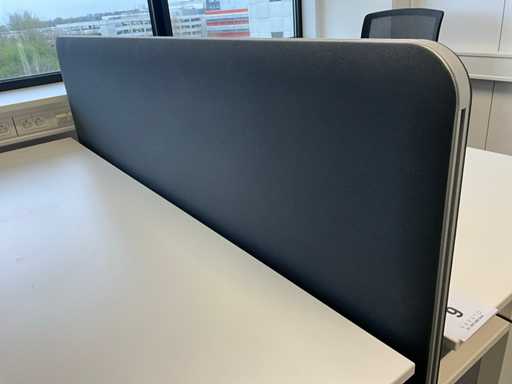 Equipped with cable grommet. Consisting of 2x desktop 160x80cm, 1 metal base and 1x acoustic partition.