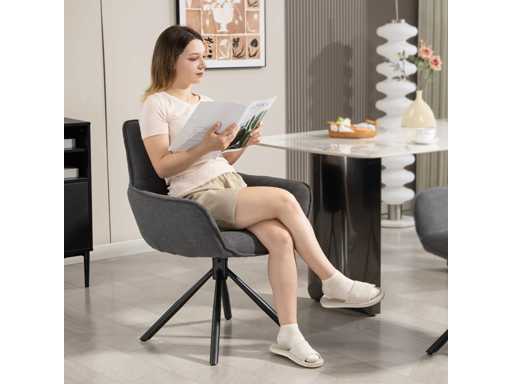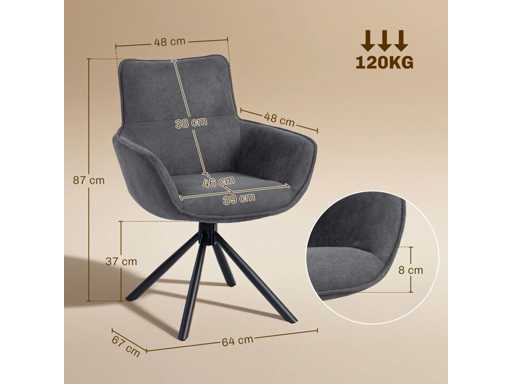 Specifications: - Color: Dark Grey + Black - Material: Velvety fabric (100% polyester), foam, metal, multi-layer panel - Total dimensions: 64W x 67D x 87H cm - Seat size: 39W x 46D x 49.5H cm - Backrest size: 48W x 38D cm - Cushion thickness: 8 cm (seat), 5 cm (backrest) - Armrest size: 48L x 5L cm - Height of armrests (at the seat): 15 cm - Maximum weight: 120 kg