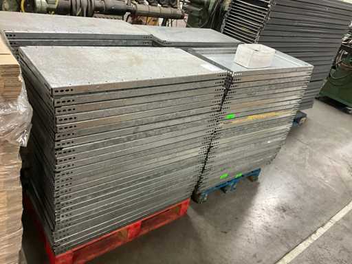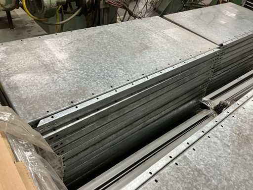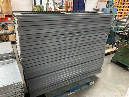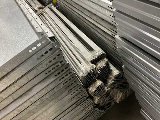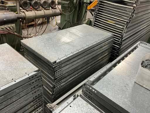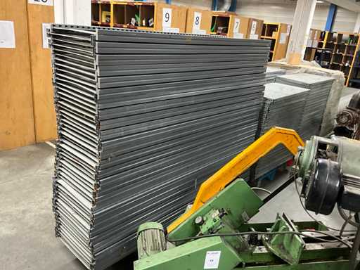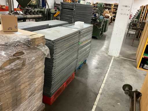 Dimensions of upright: 180x50cm, dimensions of shelf: 100x46cm, already disassembled, stacked on 5 pallets