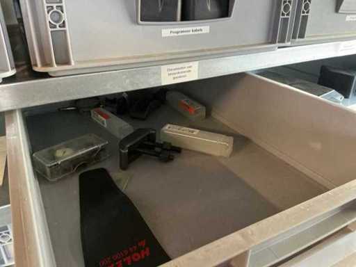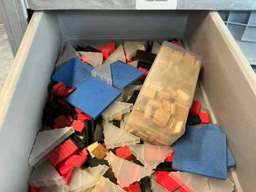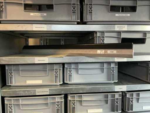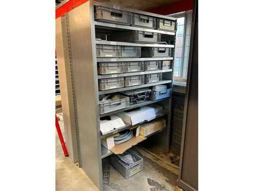 Shelving with various robot parts