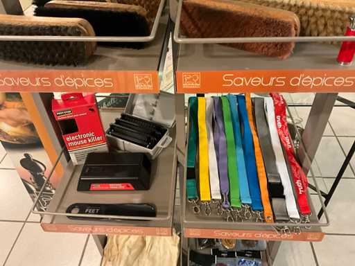 Including various shoe polish brushes, lint remover, various laces, electronic mousetrap, hanging ribbons....