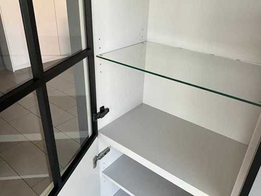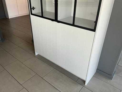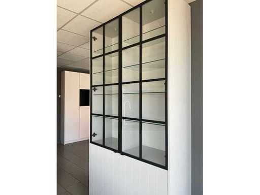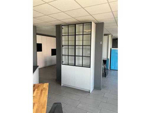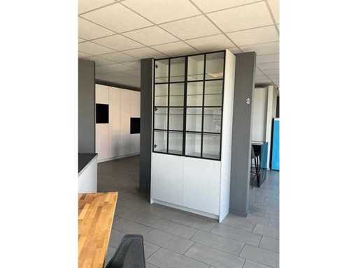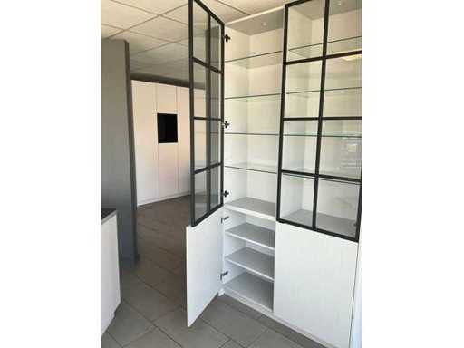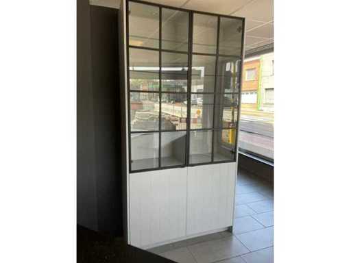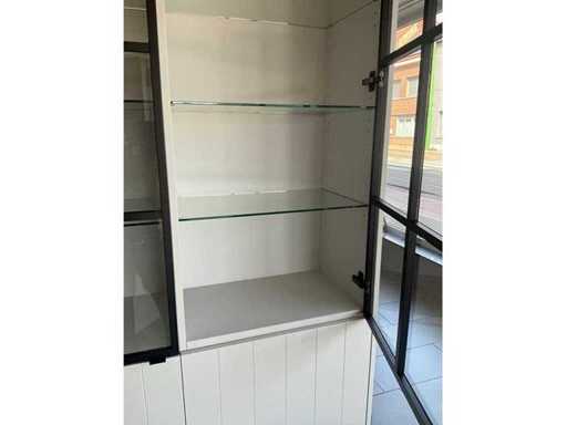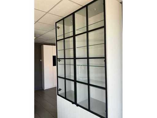 Dimensions display cabinet approximately 124 x 40 x 240 cm high.