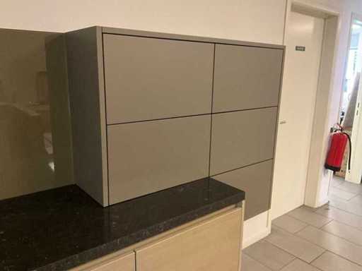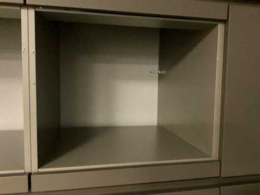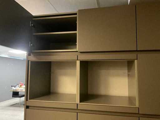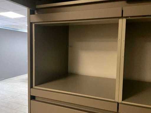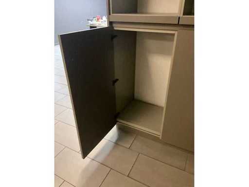 with 1 drawer, 14 doors, 2 open storage compartments,