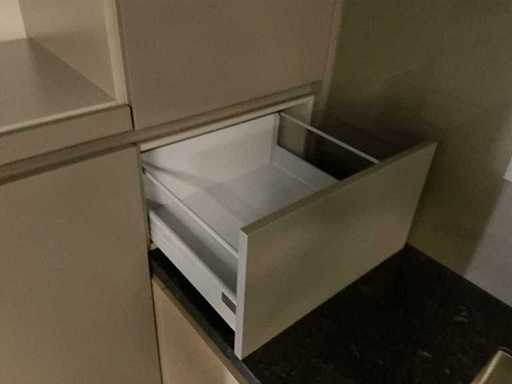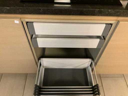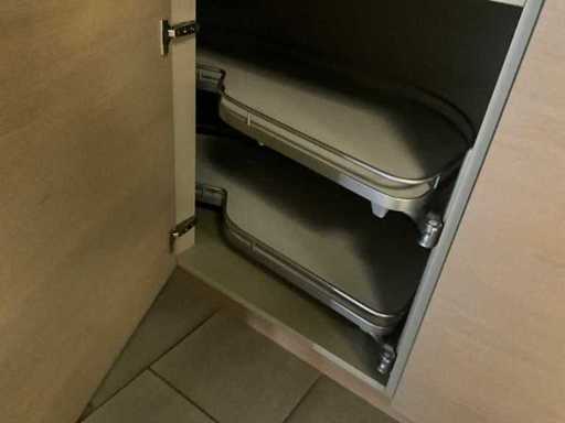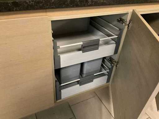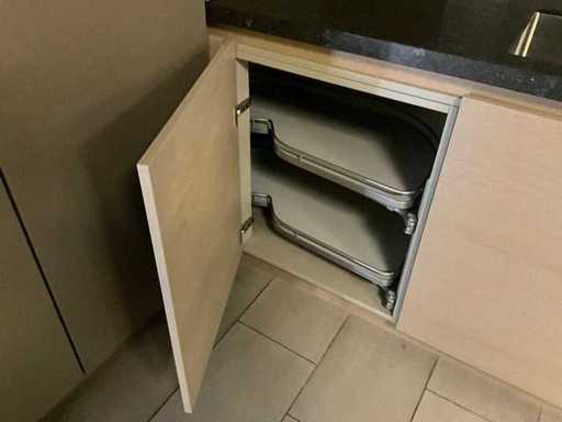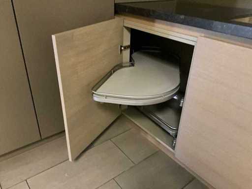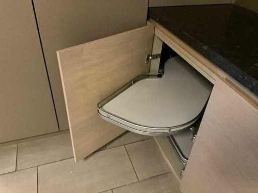 various built-in drawers in the cupboards and swivel platforms in the corner cupboard