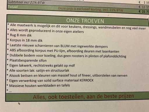- Eiland opstelling, hoekkeukens, parallelkeukens, rechte keukens, u-keukens