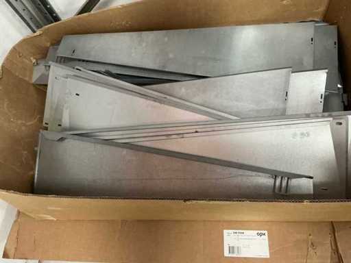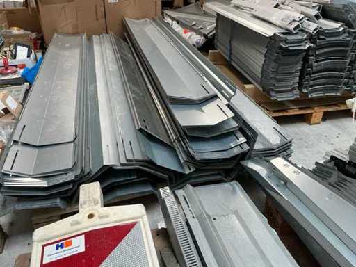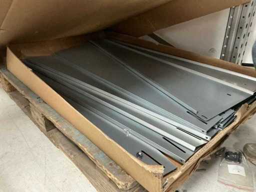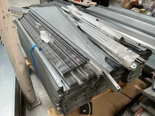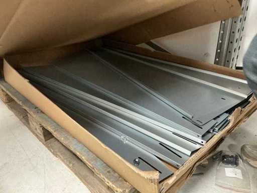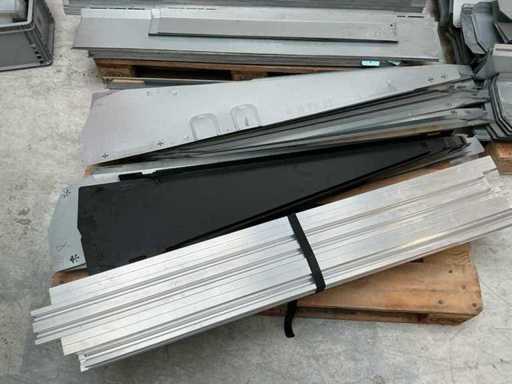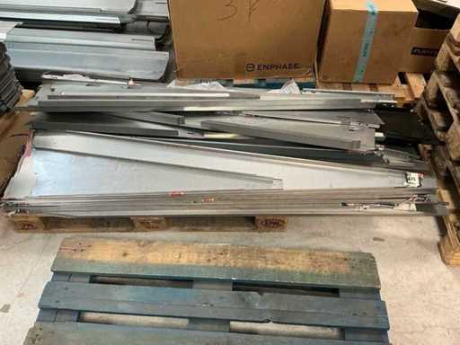Equipped with: 51x Esdec Steel Ballast Boxes, blubase Steel back plates, van der Valk steel back plates, 80x various steel side plates, 248x ballast box Blubase, 261x back plate Blubase, 145x side plate left Blubase, 4x van der Valk canopy, 25x ballast holder van der Valk, 67 steel side plate right esdec, 11x black steel side plate esdec, 60x esdec steel side plate left, 40 x steel back plate van der Valk, 19 profile solarconstruct, 200x steel back plate esdec, 50x steel esdec wave side plate