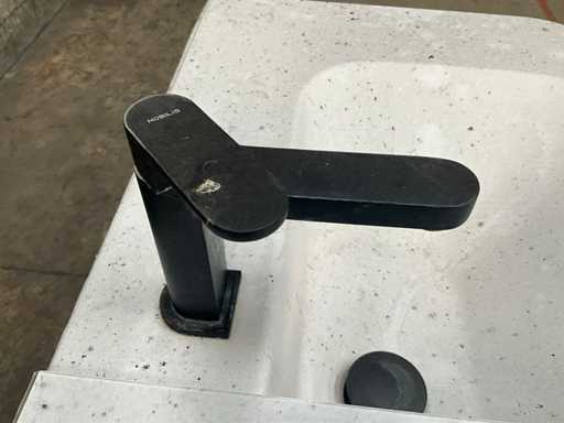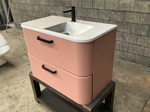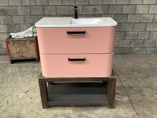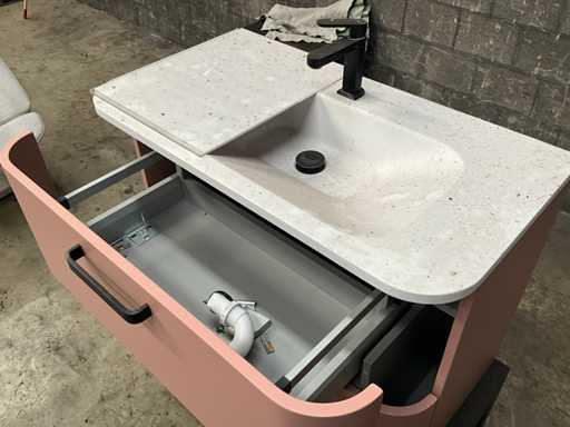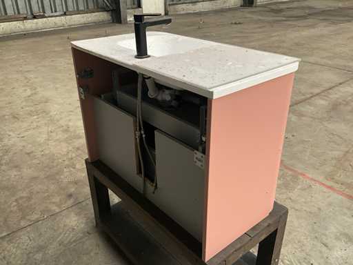 Complete with washbasin cabinet with plastic sink, single-lever mixer tap and 2 drawers