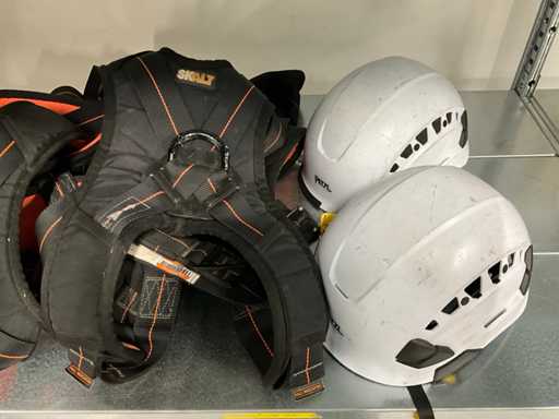 Includes 2x safety line on reel, 2x "Peltz" safety helmet.