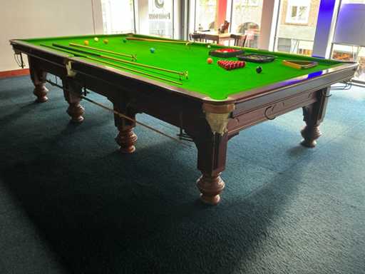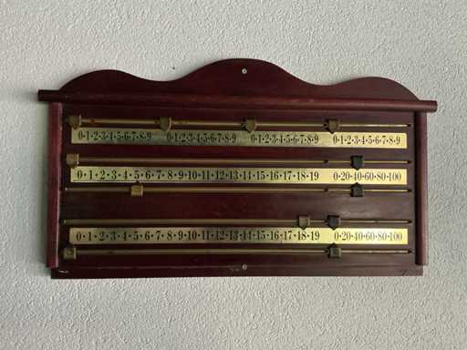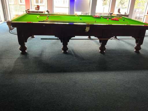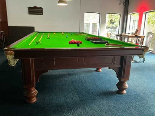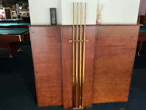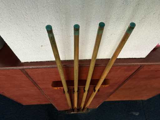 Equipped with: 4x cue, 4x play attachments, 2x complete ball set, triangle, scoreboard