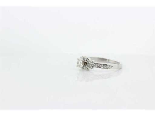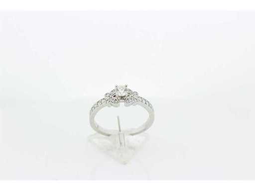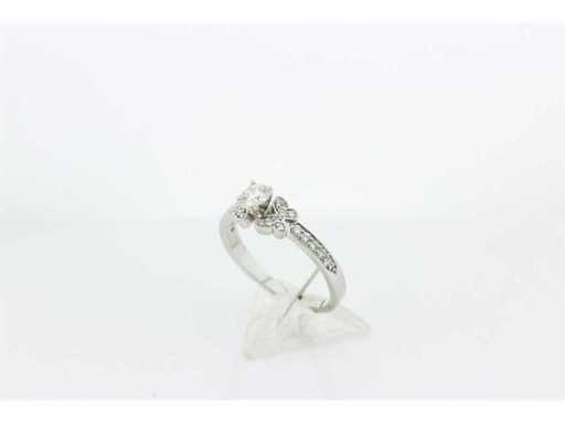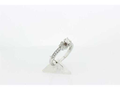 New and unused. Solitaire with 1 brilliant cut diamond weighing 0.26 crt as the main stone. Colour G and quality VS. On the shank are 26 brilliant cut diamonds with a total weight of 0.20 crt. Colour G and quality VS. Includes a ring box and a valuation report with an insurance value of € 2150,-- issued by a qualified appraiser. Gemstone: Natural diamond